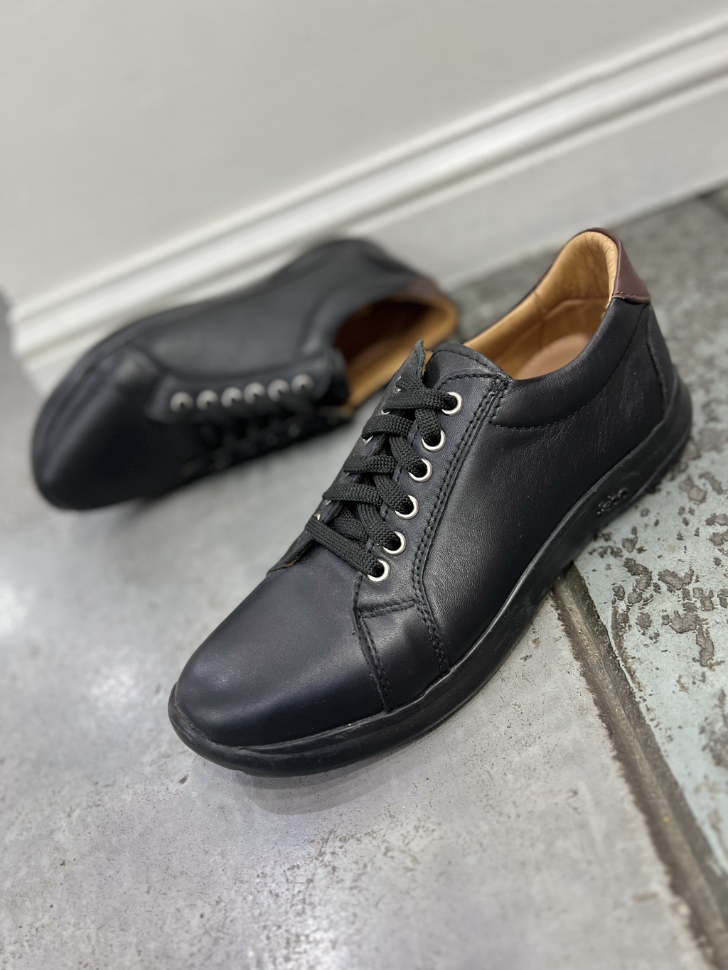 - Zapatilla acordonada confeccionada en cuero vacurno.
