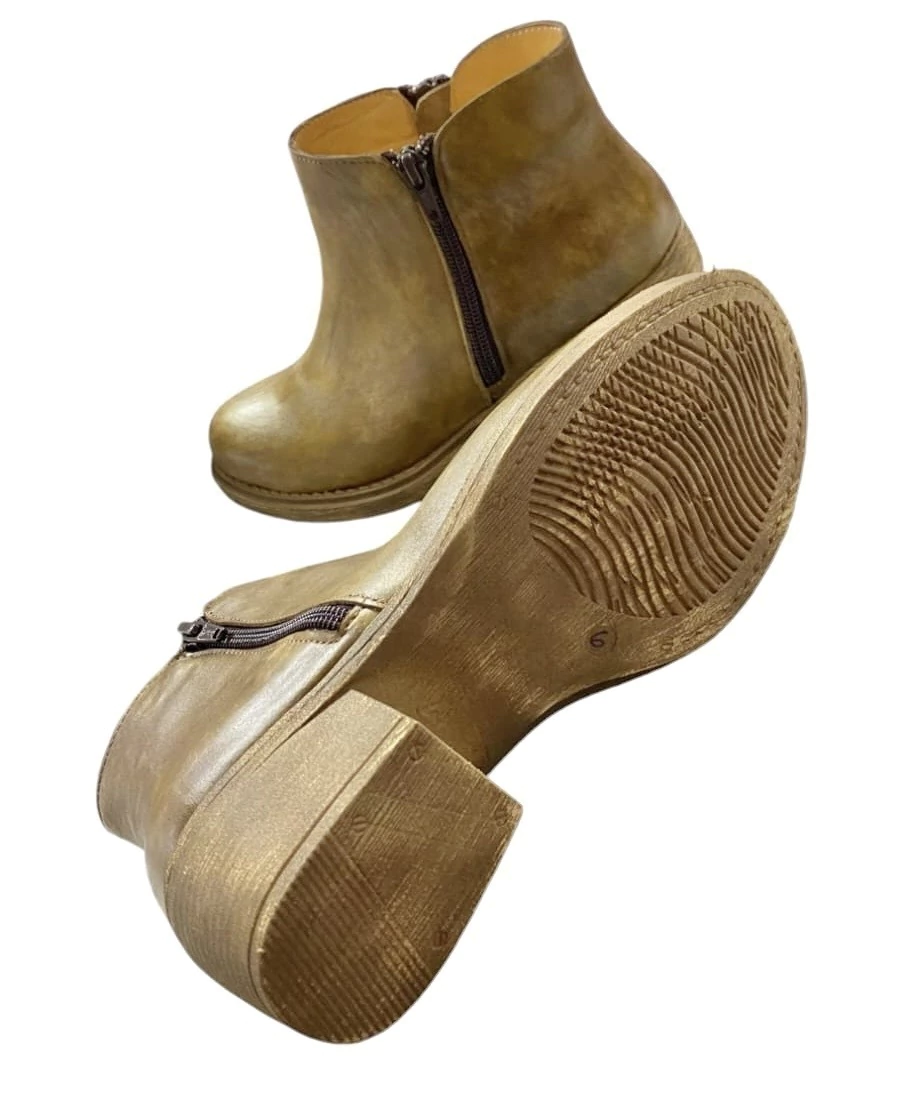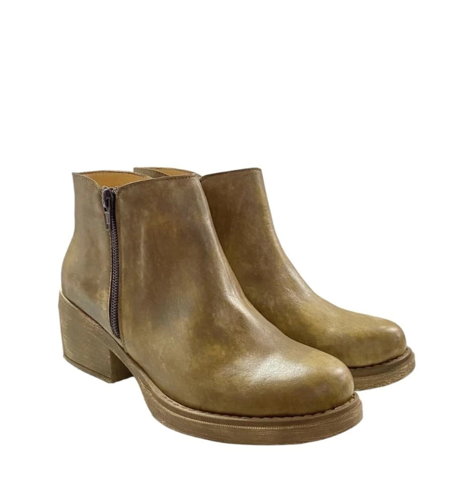 - Bota de dama confeccionado con cuero, abertura con cierres laterales.