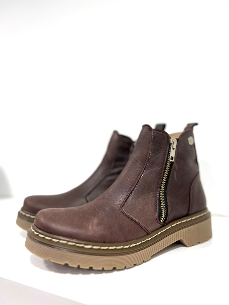 - Bota confeccionada con cuero, con cierre en ambos laterales.