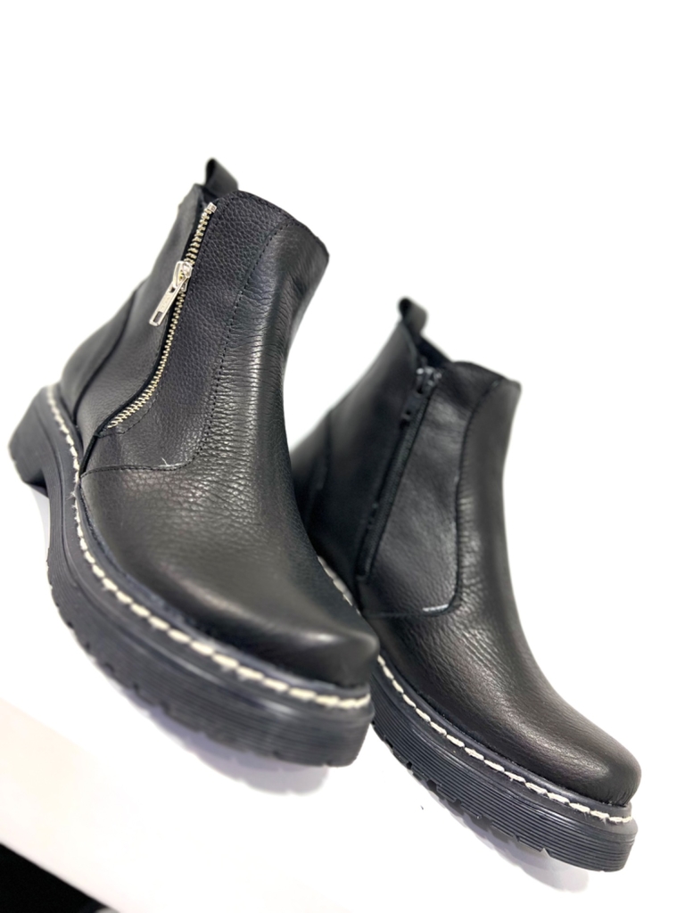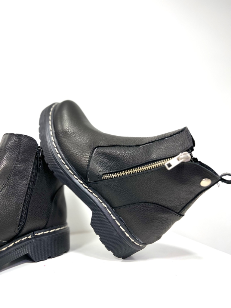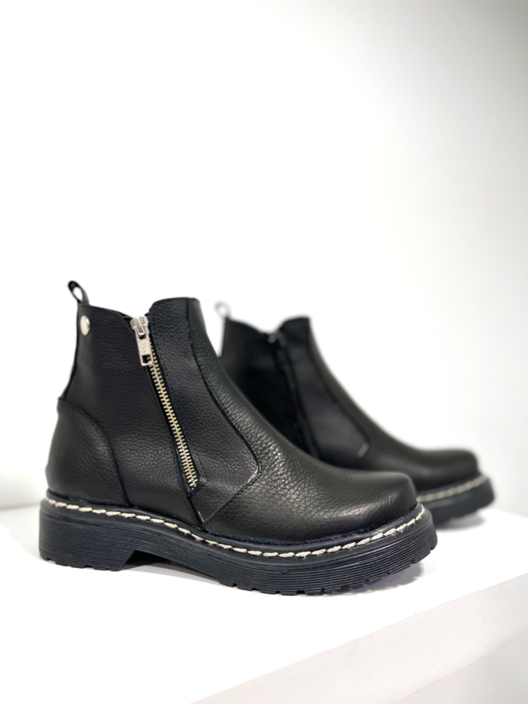- Bota confeccionada con cuero, con cierre en ambos laterales.