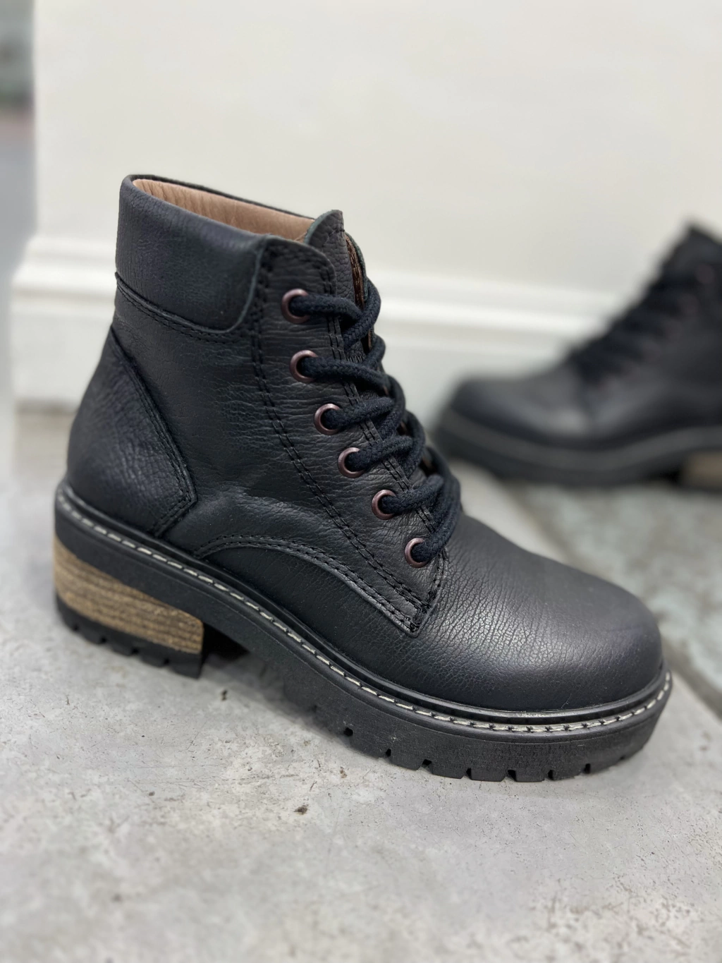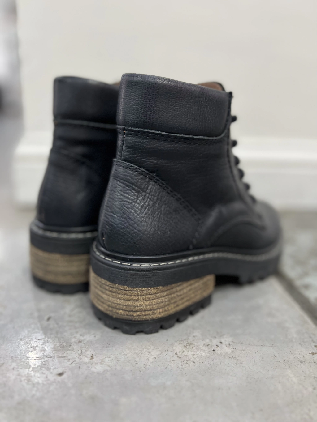 -Borcego mujer acordonado de cuero y forrado en cuero