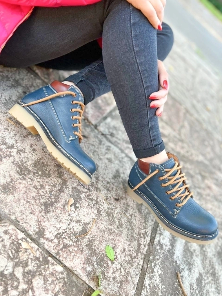 -Borcego acordonado de cuero y forrado en cuero tambien