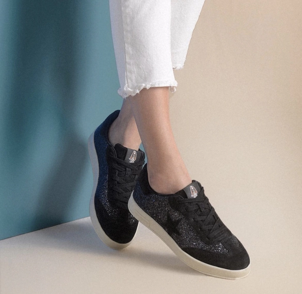 Zapatilla Hush Puppies acordonada en glitter con puntera, pieza de talón, cordonera y lengua en cuero descarne. Aplique de estrella en el lateral. Etiqueta tejida en la lengua con la identificación perro+Hush Puppies. Plantilla de eva y pu super confortable con identificación. Fondo de TR con un altura total de 2,5cm.