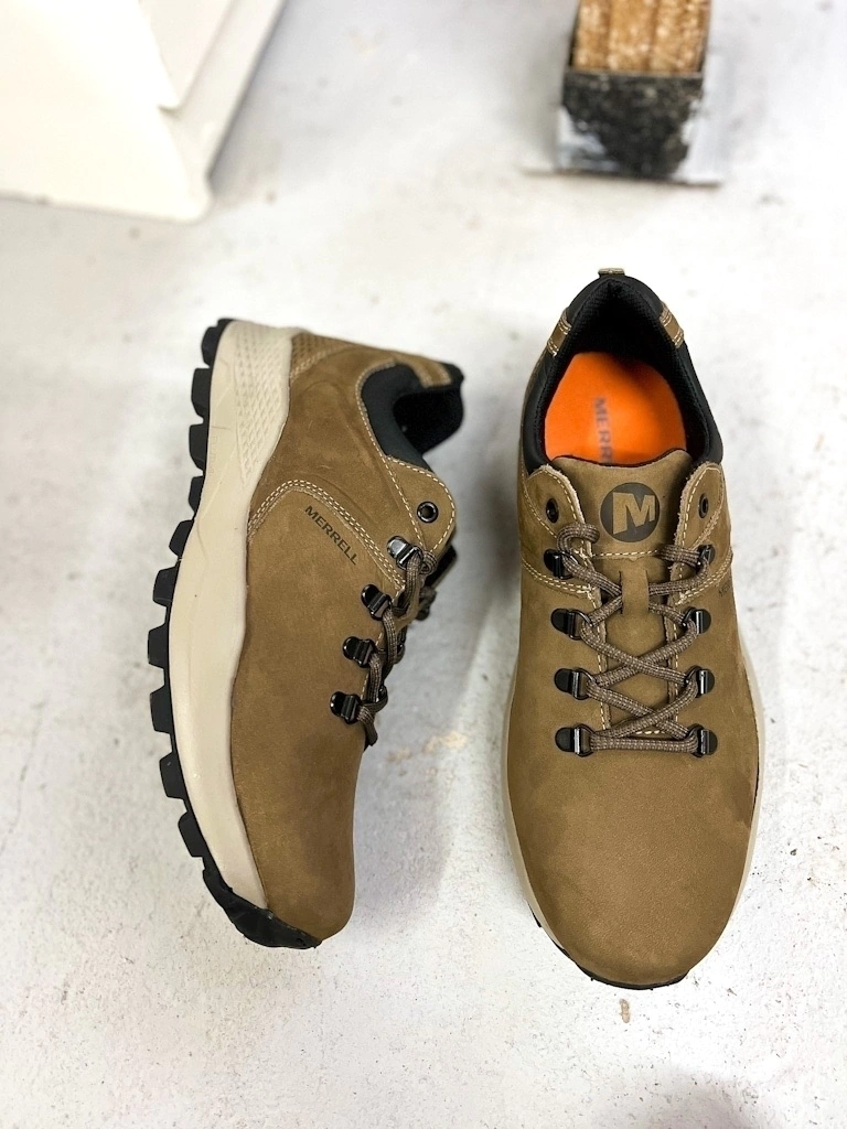 - Zapatilla outdoor acordonada de cuero nobuk con ojalillos.