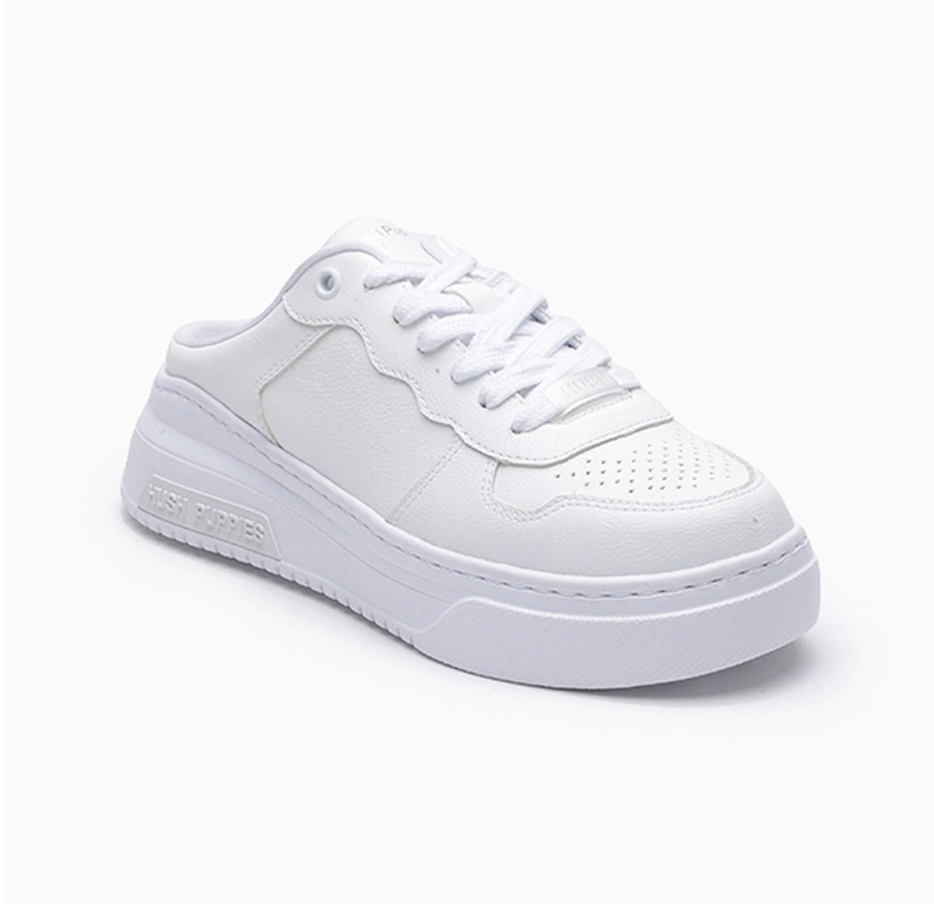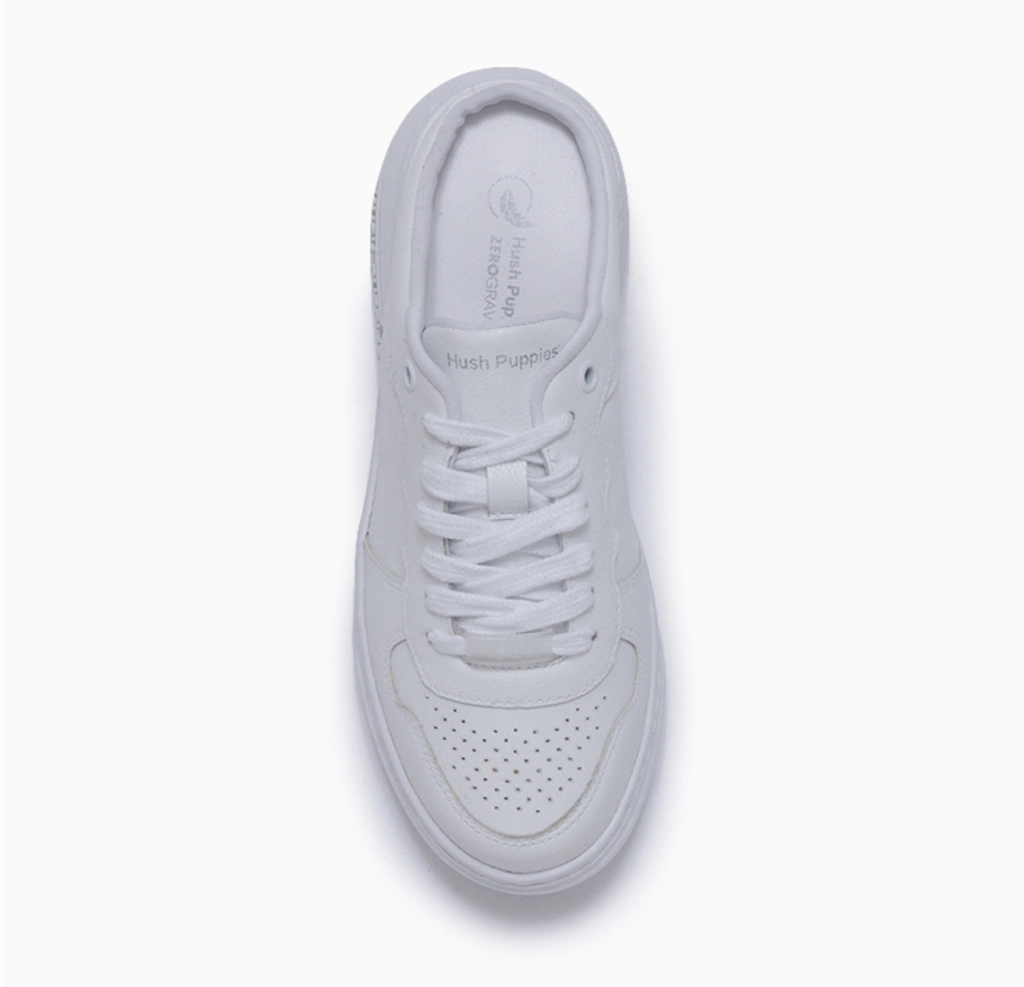 Zueco urbano Hush Puppies de material sintético color blanco con fondo de eva con inserto de la marca en el lateral. Altura total del fondo 4,5 cm. Plantilla de eva y pu super confortable con identificación. Con tecnología Zero G: el sistema ZERO G de Hush Puppies combina una entresuela capaz de absorber impactos leves, con una construcción atlética para un confort instantáneo y duradero. ¡Son tan livianas que casi no pesan! Entresuela que absorbe los golpes.