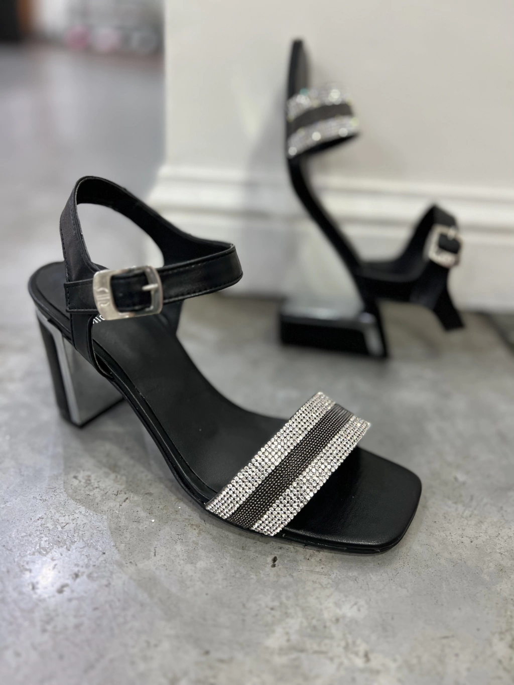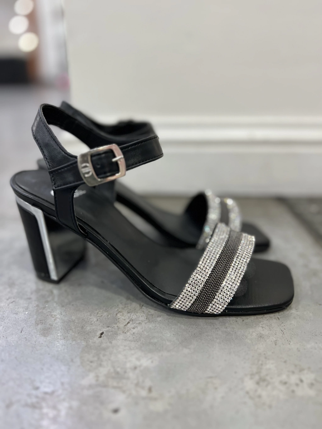 - Sandalia de fiesta con faja de strass en color plata