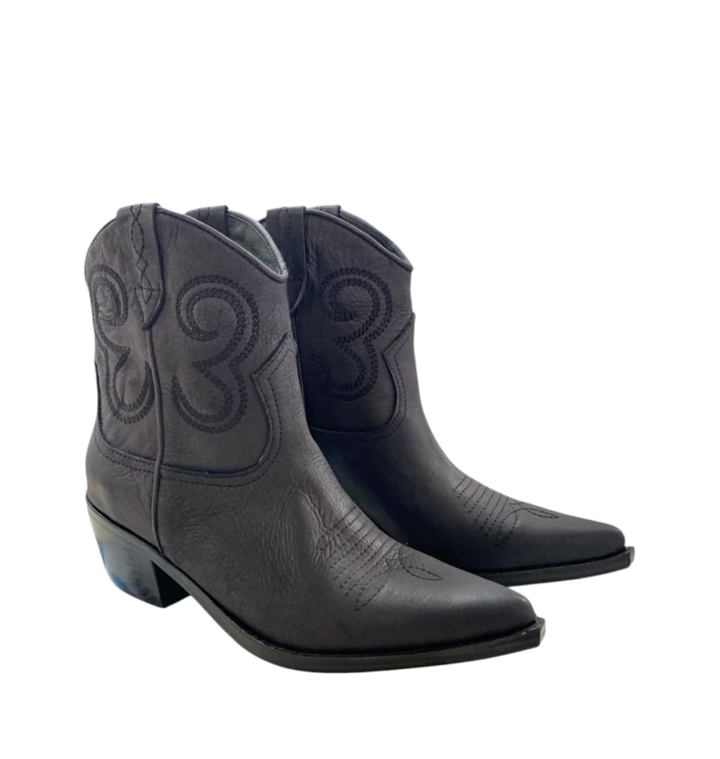 - Texana de cuero y forrada en cuero bordada