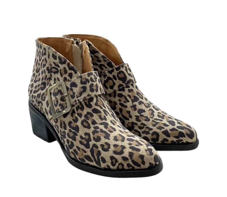 - bota estilo texana con detalle de cinto y hebilla de cuero forrada en cuero y cierre lateral