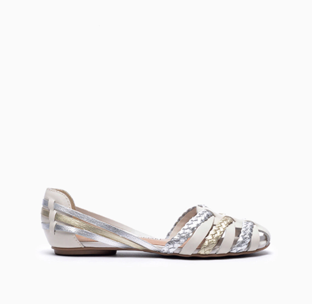 Zapato con multi tiras lisas y trenzadas en cuero y metalizado. Plantilla en pu con identificación Hush Puppies en relieve. Suelín de tr antideslizante.
